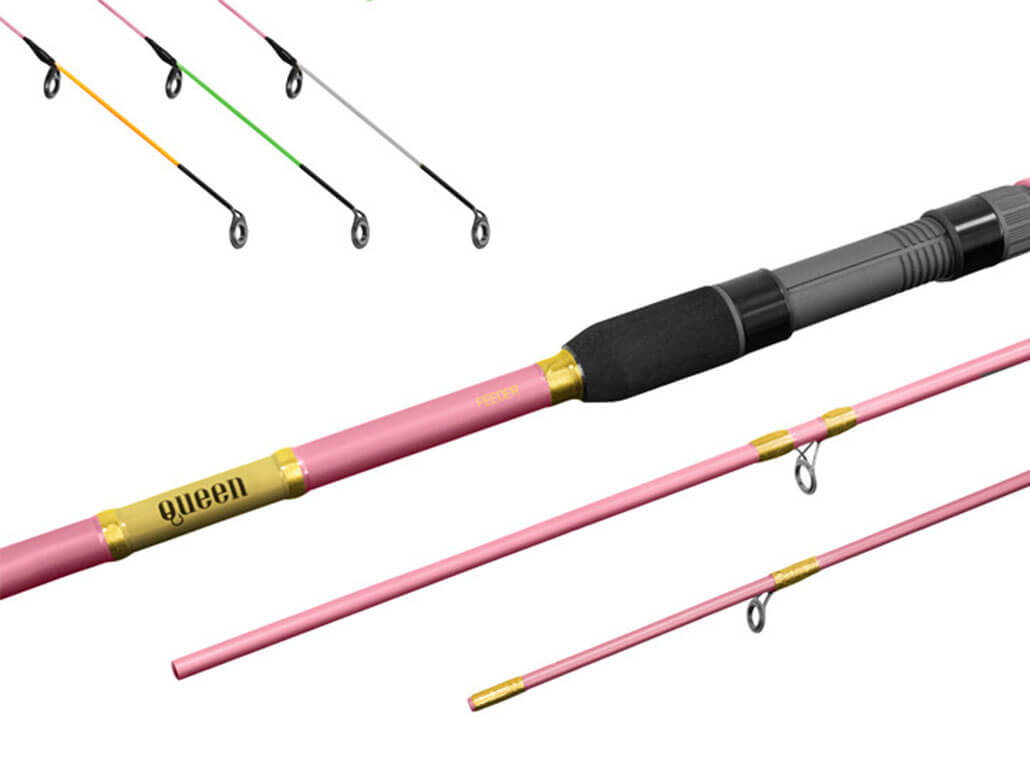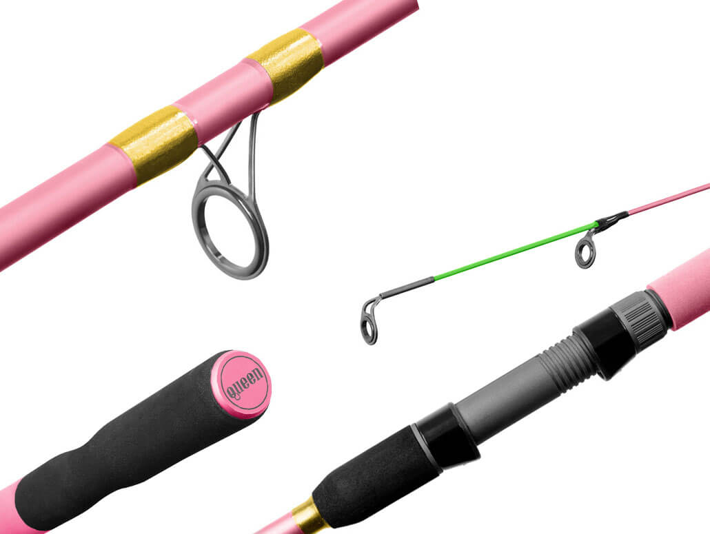 Wie alle Produkte der Queen-Serie ist auch diese Rute speziell für das weibliche Geschlecht konzipiert. Speziell für jene Damen, die das Feederfischen besonders gern mögen. Sie ist in einer attraktiven rosa Farbe in Kombination mit goldenen und schwarzen Elementen gestaltet.