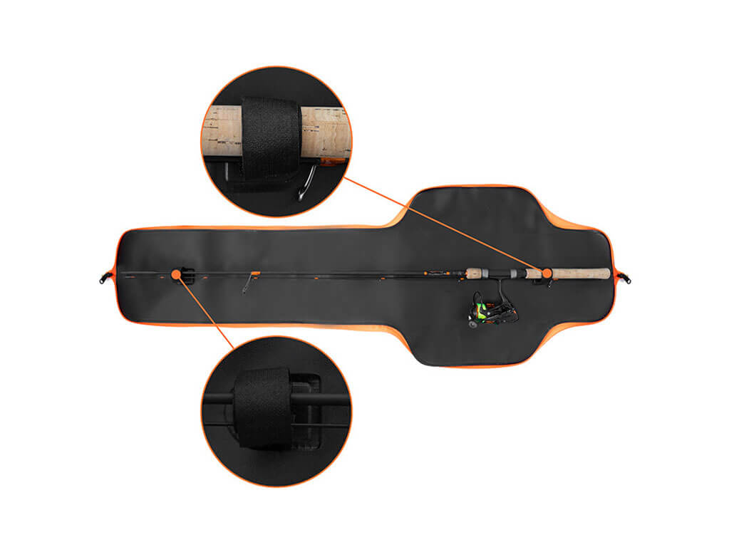 Dank des erweiterten Teils zur Aufbewahrung der Rolle passt jede standardmäßig verwendete Spinnfischen-Ausrüstung in die Tasche. Die Tasche ist in verschiedenen Längen erhältlich, sodass sie für eine möglichst breite Palette von den Angelruten geeignet ist. Für die maximale Stabilität während des Transports sorgen zwei interne Klettverschlüsse, die die Ruten fest fixieren und unerwünschte Bewegungen verhindern.