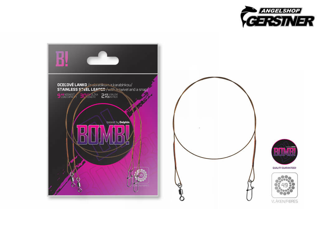 Geflochtener Stahldraht von Serie -BOMB! Ist aus 49 Stahlfäden geflochten. (auch wie 7×7 bezeichnet) Er zeichnet sich durch seine wirklich sehr hohe Weichheit sowie eine wirklich kompromisslose Widerstandsfähigkeit gegenüber scharfen Zähnen und Hindernissen aus! Dank den Eigenschaften dieser Schnur ist die Manipulation mit ihr wirklich schön und einfach. Durch und durch ein erstklassiger Schutz gegen Scharfe Zähne von Hecht und anderen Räubern!