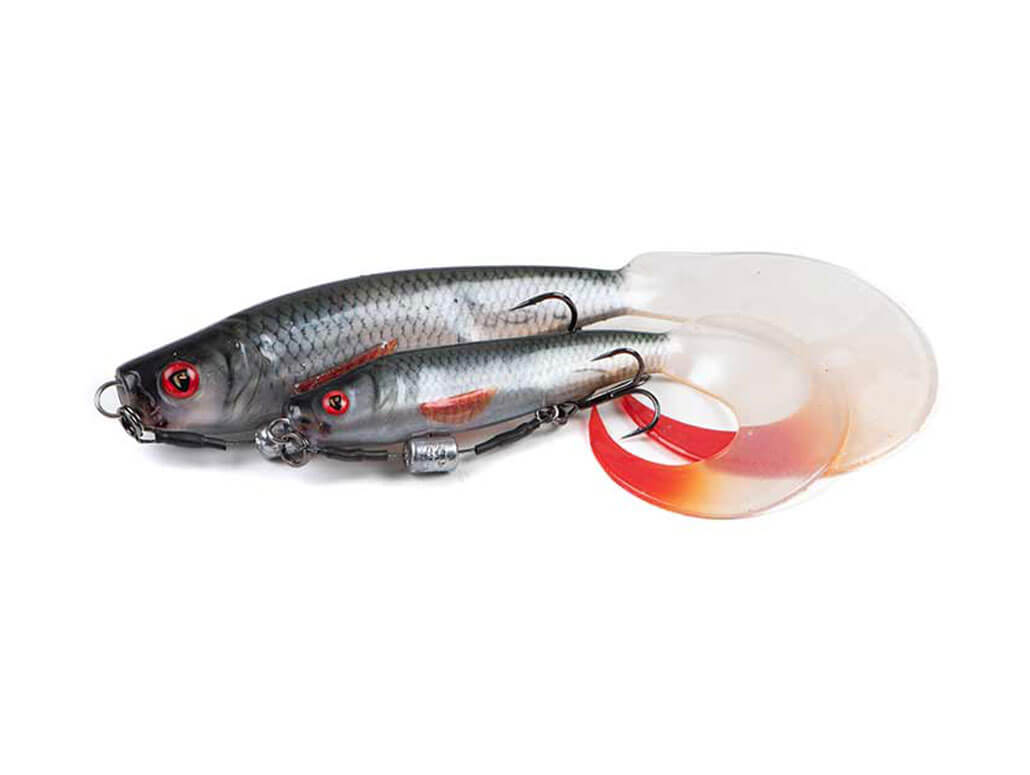 • Zwei Größen: 12cm/4.75” (Drillinge Größe 6/mit 4g vorbeschwerter Harness/17g total) 16cm/6.3” (Drillinge Größe 2 / mit 6g vorbeschwerter Harness/35g total).