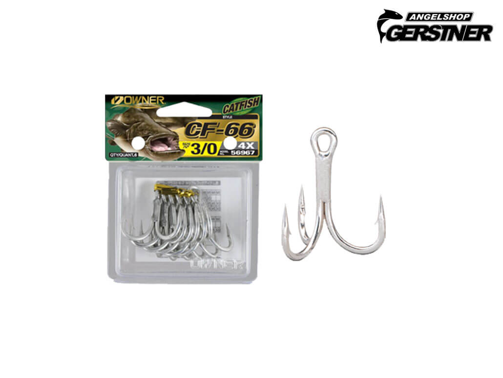 Der Drilling besticht durch seine Robustheit und seine enorm scharfen Hakenspitzen, die beim Biss leicht in das Welsmaul eindringen. Mit verschweißtem Hakenöhr.